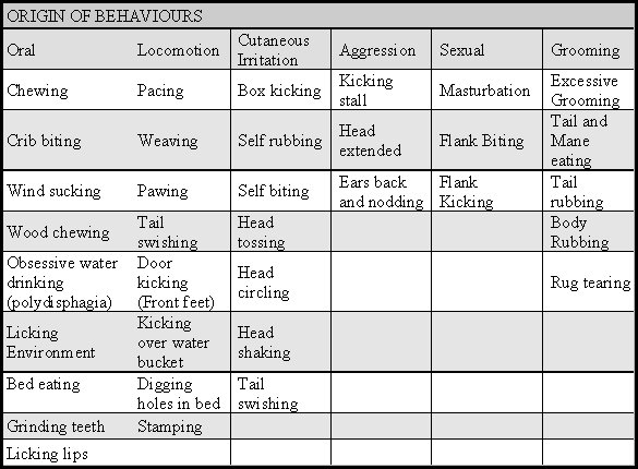 TABLE 2 - The table below shows some of the stereotypies and their origin of behaviours (Luesher et al 1991).