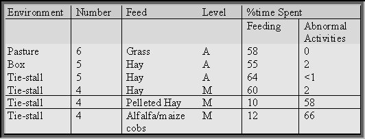 TABLE 3 - Effect of diet on time spent feeding and time spent in abnormal behaviour in the horse (from Marsden 1993).