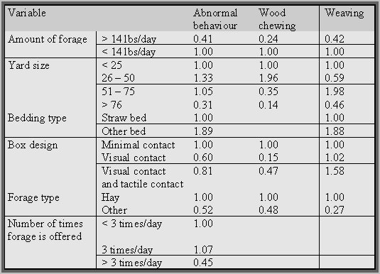 TABLE 4 - The multi variable relationship between yard variables and the risk of an individual horse performing anomalous behaviours (adapted from McGreevy 1995b).
