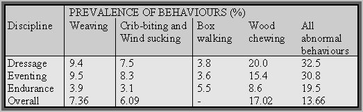 TABLE 5 - Prevalence of the four behaviours in the horses trained for three disciplines (from McGreevy 1995a).