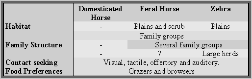 TABLE - A comparison of various behaviours of domesticated horses, feral horses and zebra, (taken from Kiley-Worthington (1977)